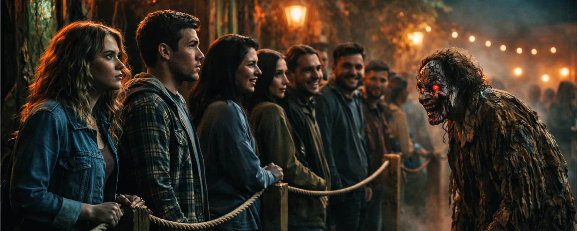 The strongest queue lines do not give everything away. They hint. A flicker in a window. A strange noise deeper inside. A gate opening somewhere ahead. The imagination starts doing work before the haunt even begins.